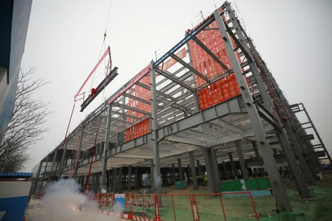 大聚合物快充产线建设项目钢结构主体顺利完成封顶