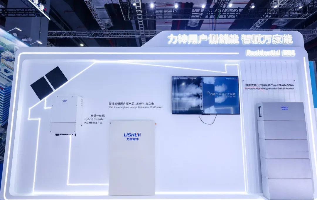 户用储能方面,力神展出20kWh高压堆叠户储系列产品和14kWh壁挂式低压户储系列产品。